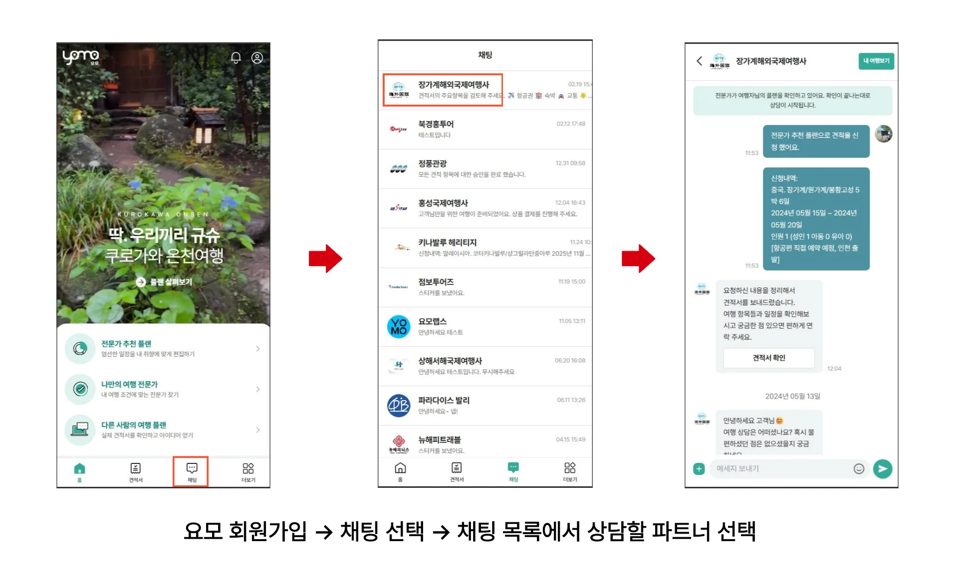 2단계: 요모에서 현지 여행사와 1:1 무료상담