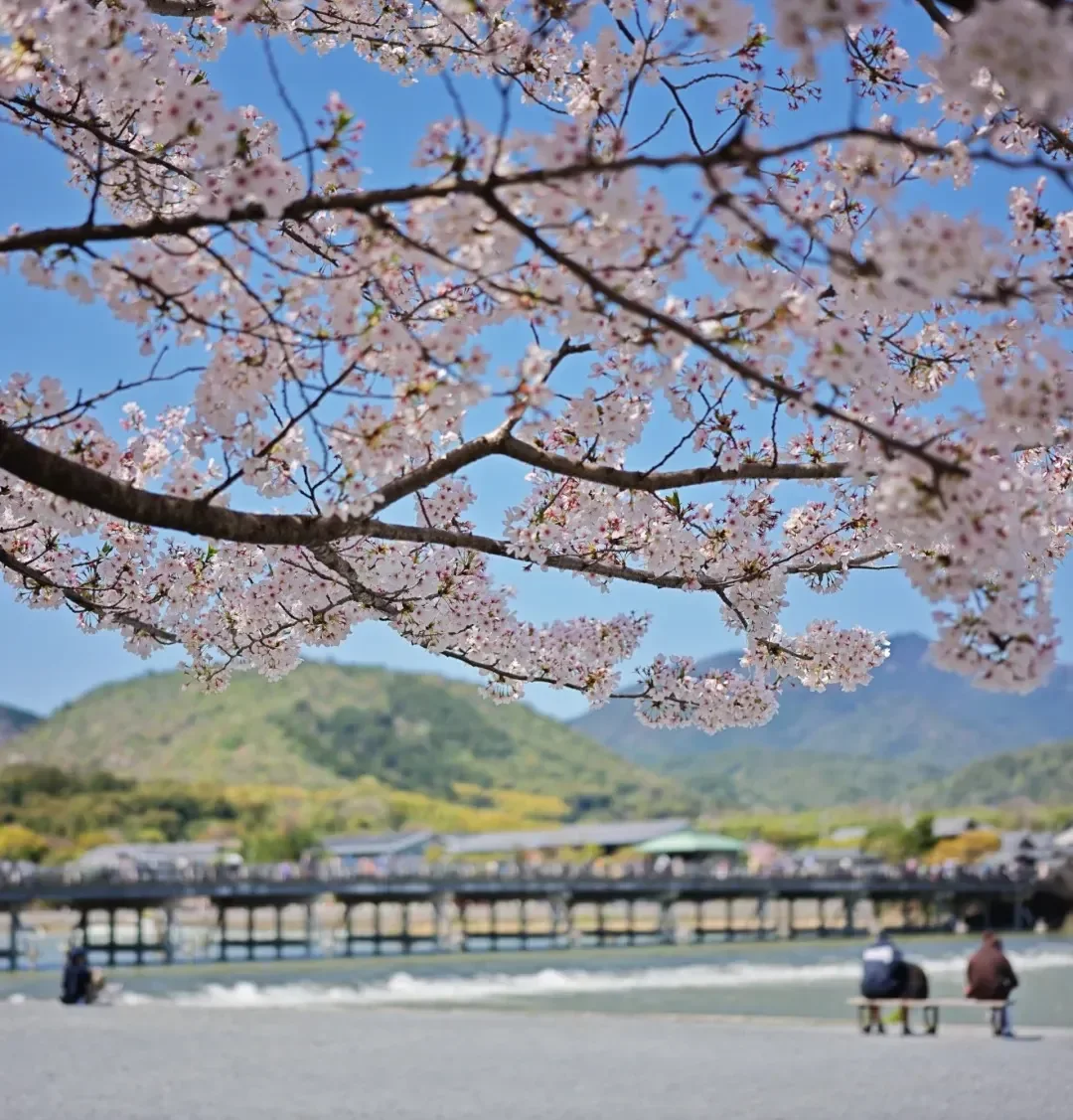 아라시야마의 상징인 도게츠교는 '달이 다리를 건너는 것 같다'는 이름만큼이나 서정적인 풍경을 자랑하는 곳이에요. 봄이 되면 다리 너머 산자락 곳곳에 산벚꽃이 연분홍빛으로 피어나는데, 인위적이지 않은 자연 그대로의 색감을 즐기기에 더없이 좋습니다. 강변을 따라 가볍게 산책하며 낮의 밝은 햇살 아래 반짝이는 호즈강과 벚꽃이 어우러진 풍경을 눈에 담아보세요.
