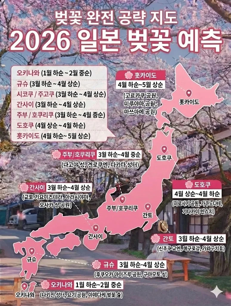 🌸 2026년 일본 지역별 벚꽃 개화 및 만개 예상일