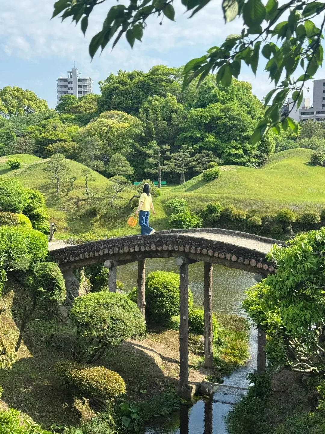 17세기 호소카와 가문이 조성한 전통 일본 정원으로, 후지산을 본뜬 언덕과 연못이 아름답게 어우러진 곳입니다.