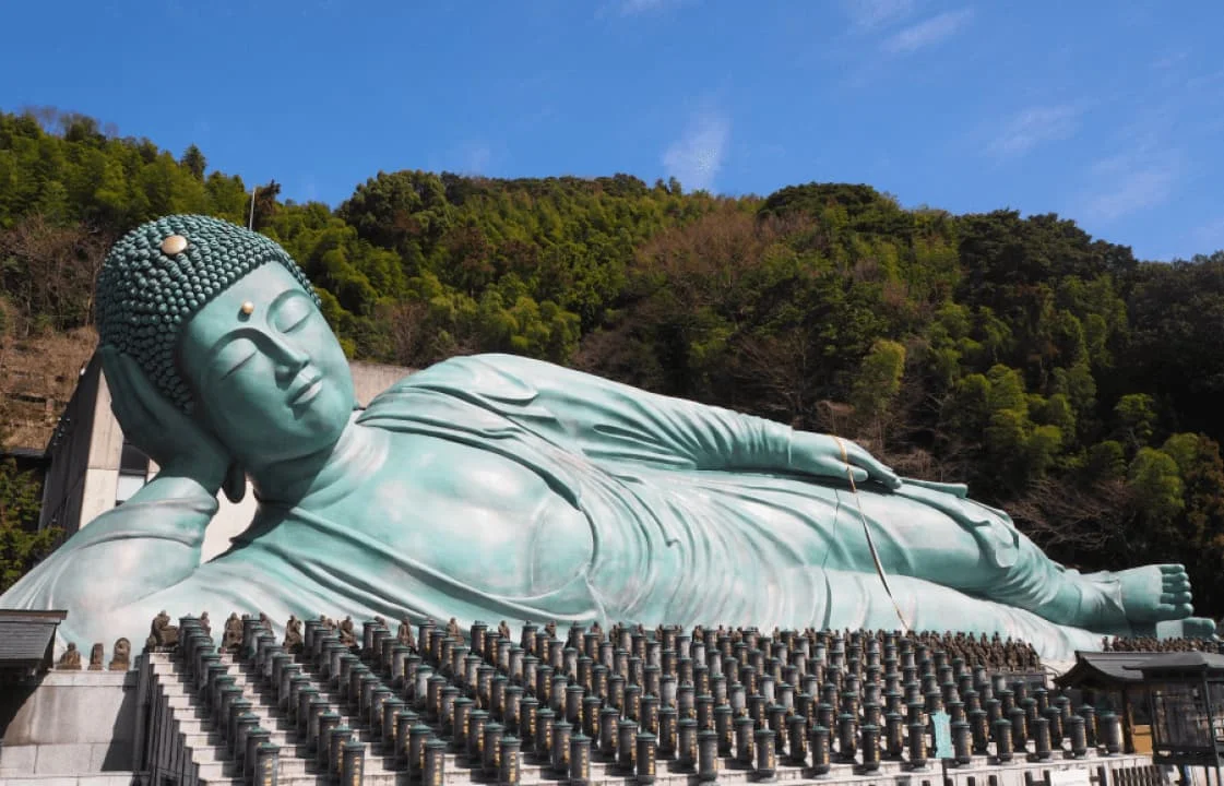 후쿠오카 근교 사사구리에 위치한 사찰로, 길이 41m, 높이 11m, 무게 300톤의 세계 최대 청동 와불상으로 유명한 곳입니다. 1995년에 완성된 이 석가열반상은 자유의 여신상과 같은 크기라고 해요. 여기는 비행기 탑승까지 시간이 좀 남아서 가이드 분이 다녀오자고 추천해주신 관광지입니다.