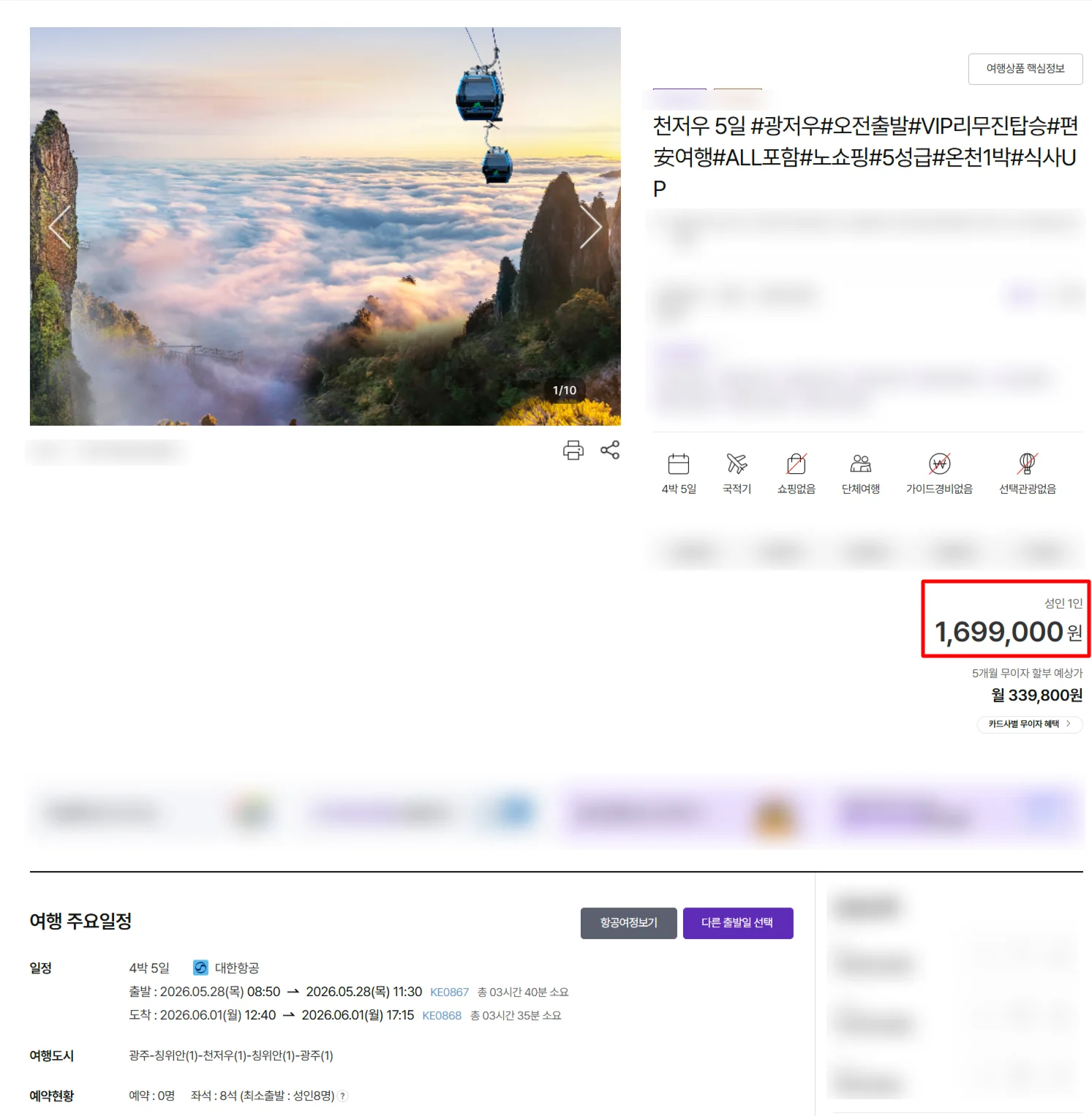요즘은 부모님을 모시고 가는 여행인 만큼, 쇼핑과 옵션이 없는 프리미엄 패키지를 많이 찾으시는데요. 실제 타사의 노쇼핑 프리미엄 상품을 한번 보겠습니다.