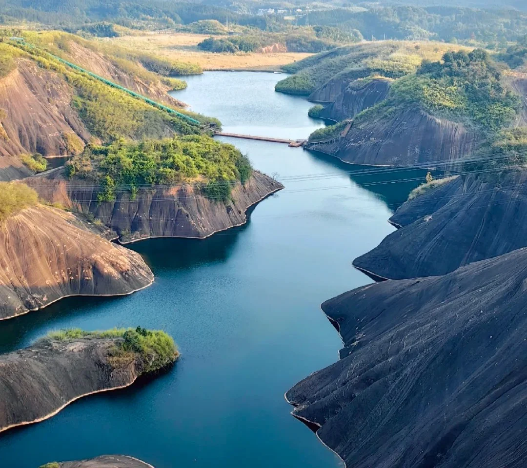 붉은 기암괴석 협곡을 에메랄드빛 강물 위 전동 뗏목을 타고 누비는 천저우의 핵심 유람 코스입니다. '작은 계림'이라 불릴 만큼 풍경의 스케일이 남다른 곳이에요.