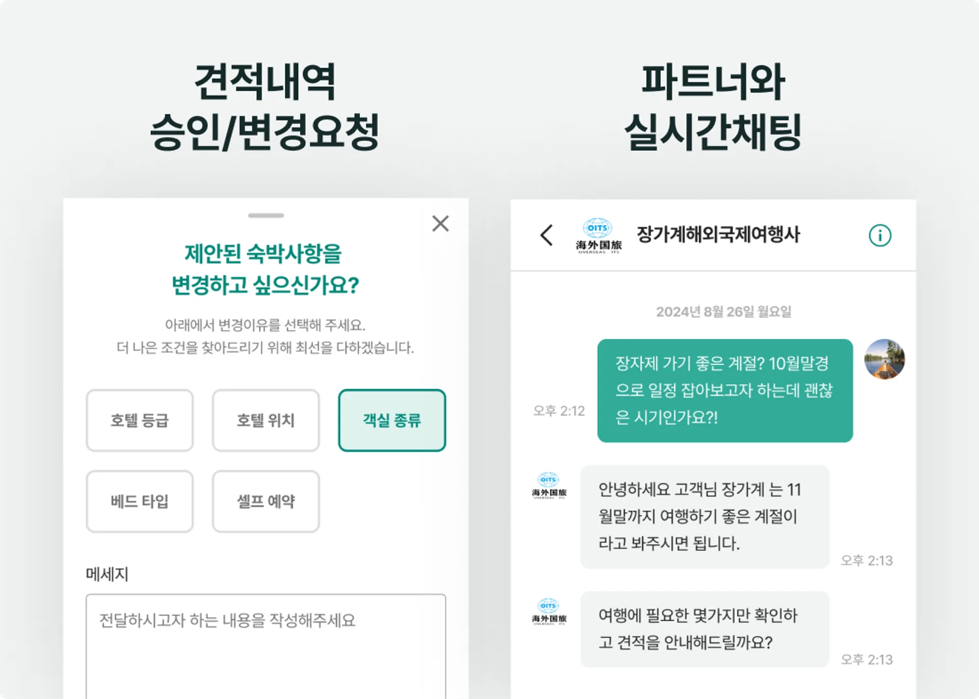 모바일 채팅상담을 통해 간편하게 일정을 요청하고, 실시간으로 견적서와 일정표를 확인할 수 있어 편리합니다.