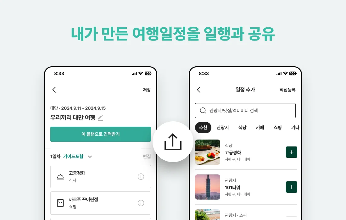 여행 구성원들과 일정을 공유하고, 각자 결제 및 여행자 정보 입력, 방 배정까지 손쉽게 할 수 있어 여행 준비 과정에서의 스트레스를 덜어줍니다.