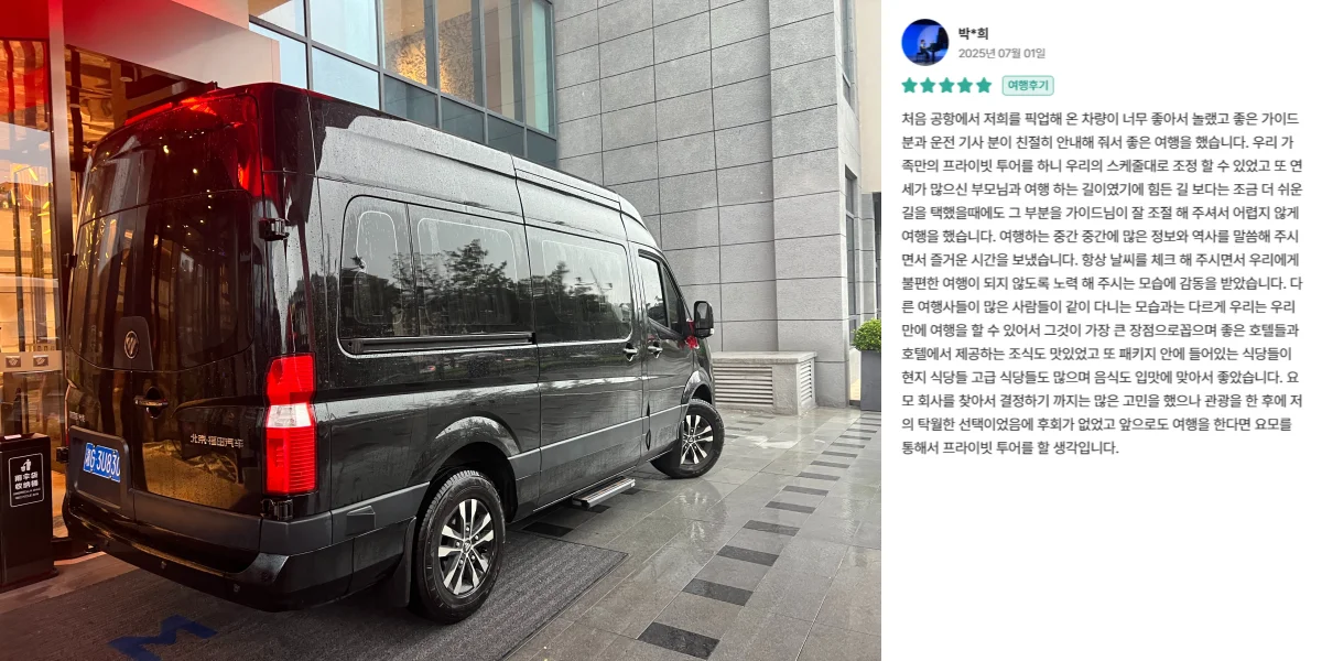 "낯선 사람들과 여행 처음부터 끝까지 함께 해야하는 과정이 개인적으로 부담스러워서 프라이빗 여행을 찾아보게 됐고, 걱정 반 기대 반으로 예약하여 다녀왔습니다! 걱정했던 것이 무색할 정도로 장가계의 멋진 풍경과 가이드님의 세심한 배려, 친절함 덕분에 저와 아버지 모두 200% 만족한 여행이 되었습니다."