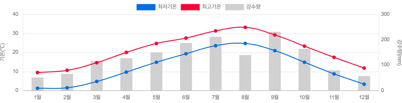 가을(9-11월): 평균 15-22°C, 단풍과 함께 쾌적한 날씨를 즐길 수 있어요.