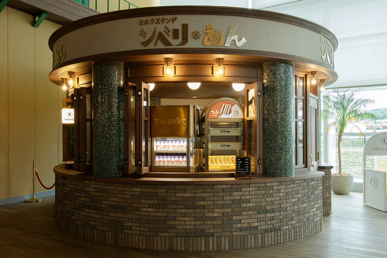 지브리의 대창고에 위치한 이곳에서는 영화 '바람이 분다'에 등장했던 카스테라 사이에 팥 앙금을 넣은 '시베리아 샌드'와 나고야의 신선한 우유를 스튜디오 지브리 오리지널 병에 담아 판매해요.