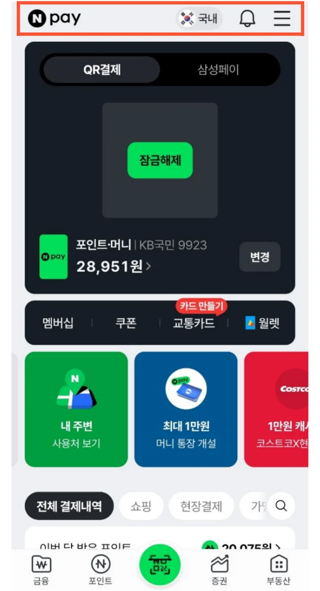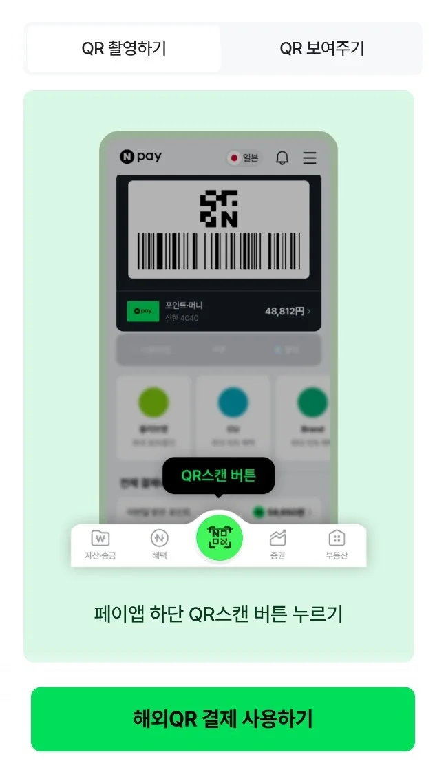 네이버페이로 현장결제하기 위해서는 네이버페이 머니 또는 포인트가 필요합니다.
