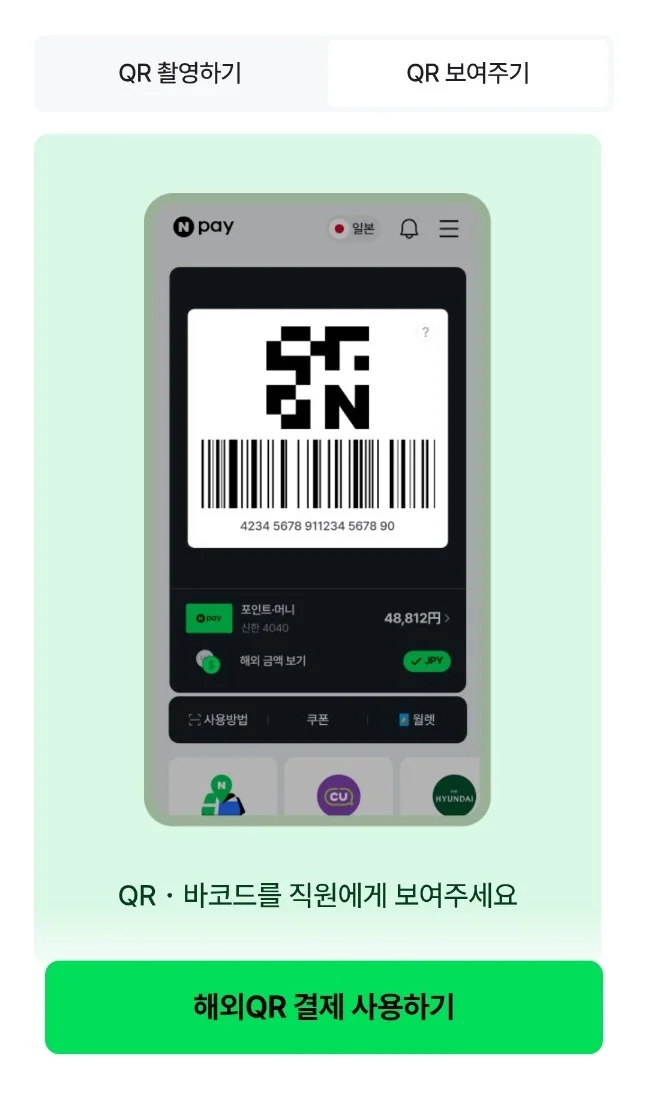 네이버페이로 중국에서 결제하는 방법은 두 가지입니다. 내가 QR코드를 스캔하거나, 점원에게 내 코드를 보여주면 됩니다.