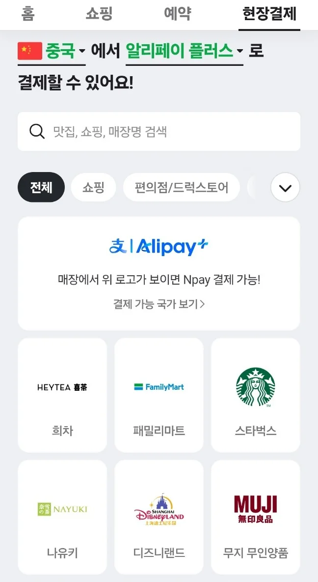 네이버페이는 중국 어디서 쓸 수 있을까요?