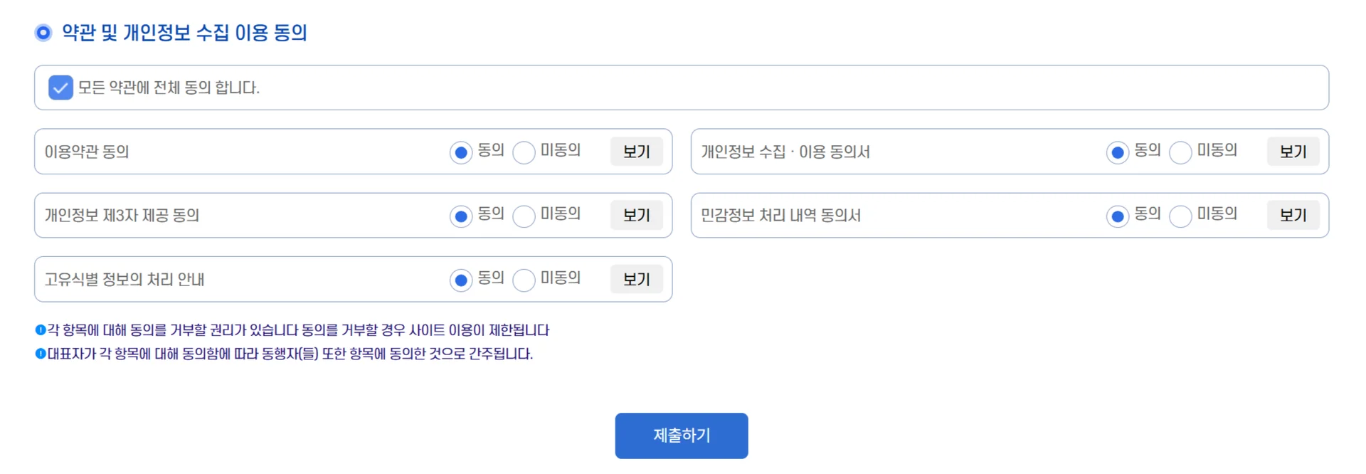 전체 동의 선택 후 제출 단계로 이동