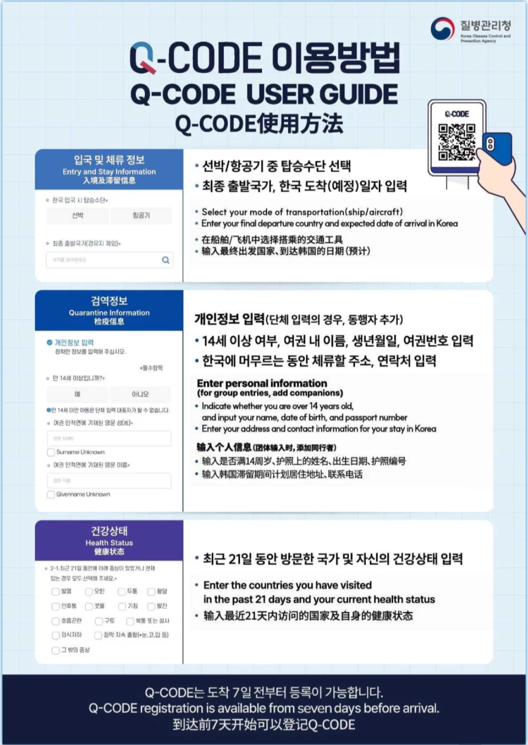 Q-CODE는 질병관리청이 운영하는 해외입국자 검역정보 사전입력 시스템입니다.