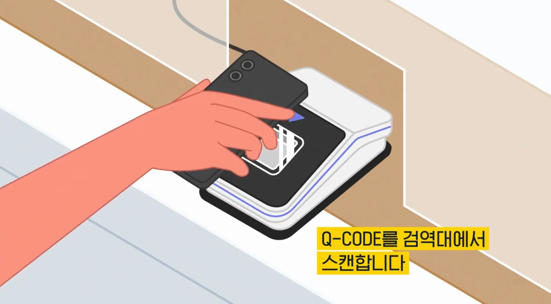 1. 검역대에서 Q-CODE의 QR코드를 스캔합니다.