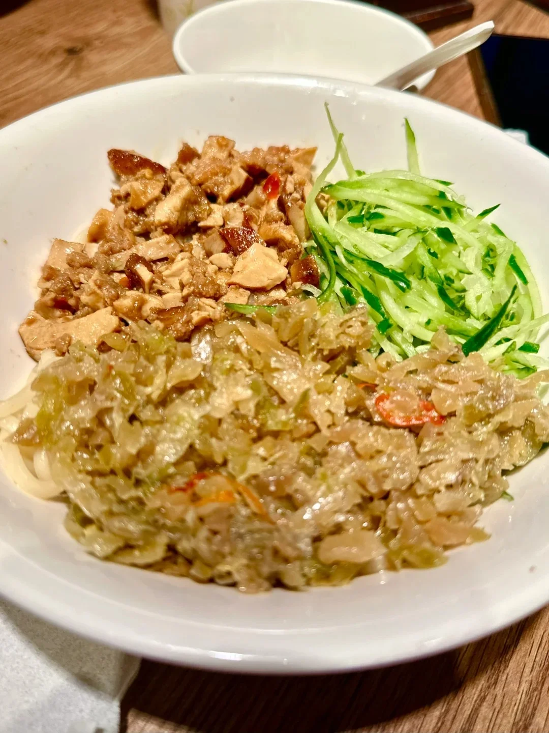 오이채와 함께 먹으니까 느끼함도 많이 줄어들더라고요. 베이징덕 뿐만 아니라 추가로 곁들인 죽이나 다른 요리들도 한국인들의 입맛에 잘 맞는 편입니다.