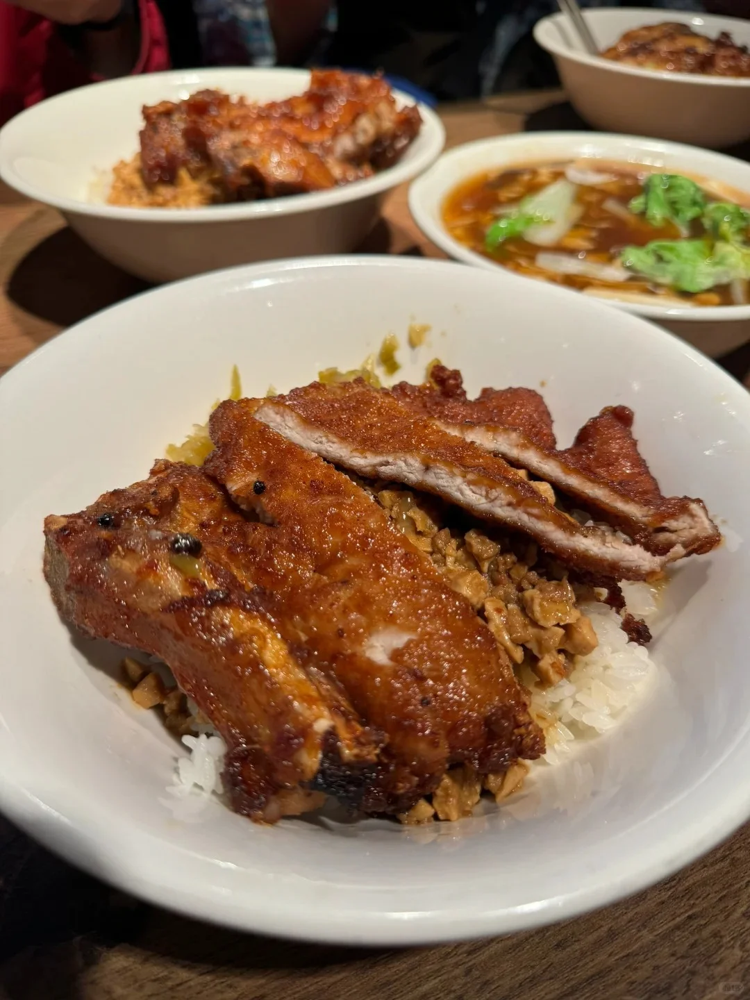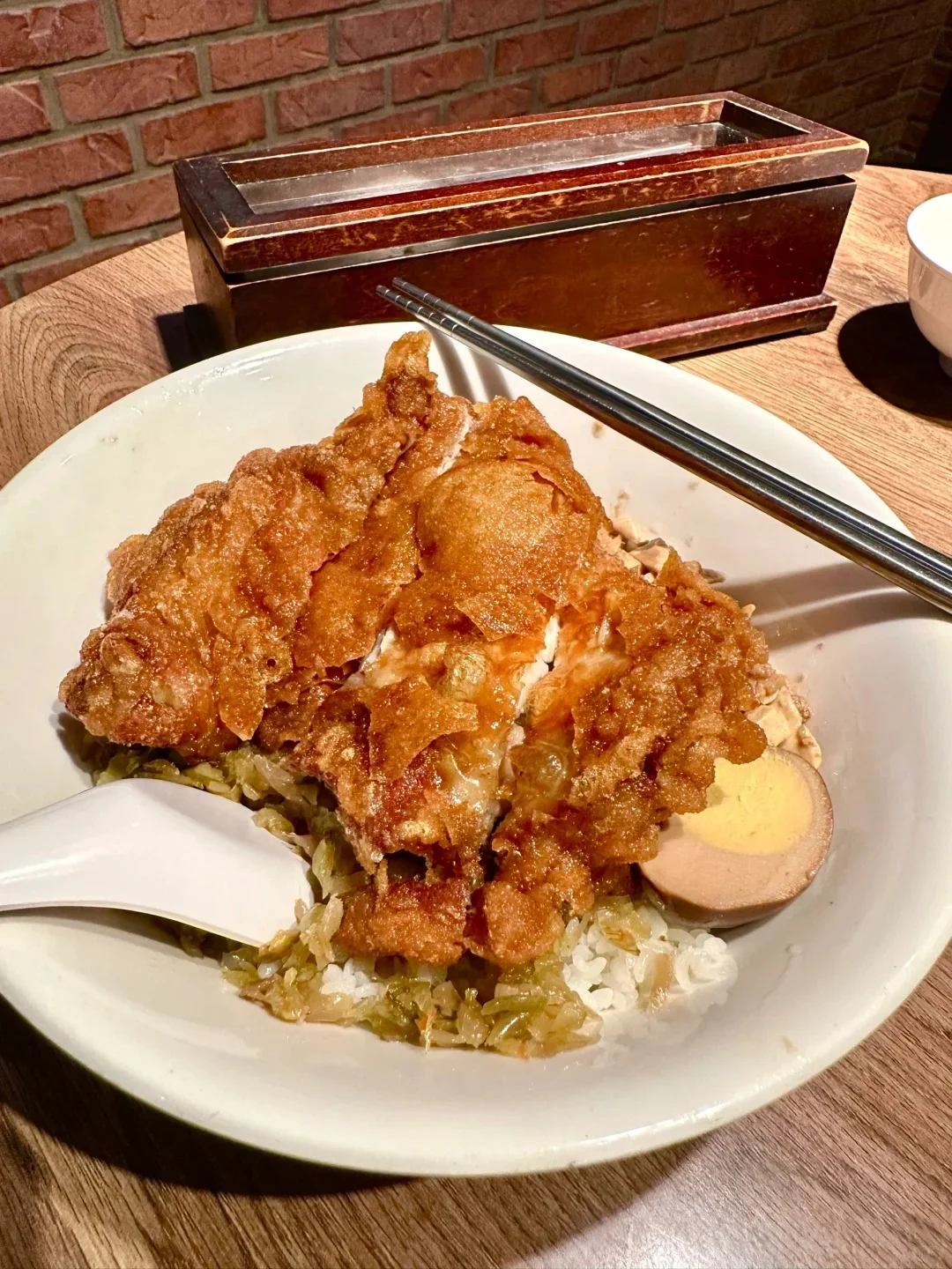 바로 排骨飯(돼지고기 덮밥)이나 雞腿飯 (닭고기덮밥)입니다.튀긴 돼지갈비가 바삭바삭하면서도 속은 부드러워요. 옆 테이블 현지인들 보니까 이걸 정말 많이 시키더라고요. 왜 인기인지 먹어보니까 알겠더라고요.
