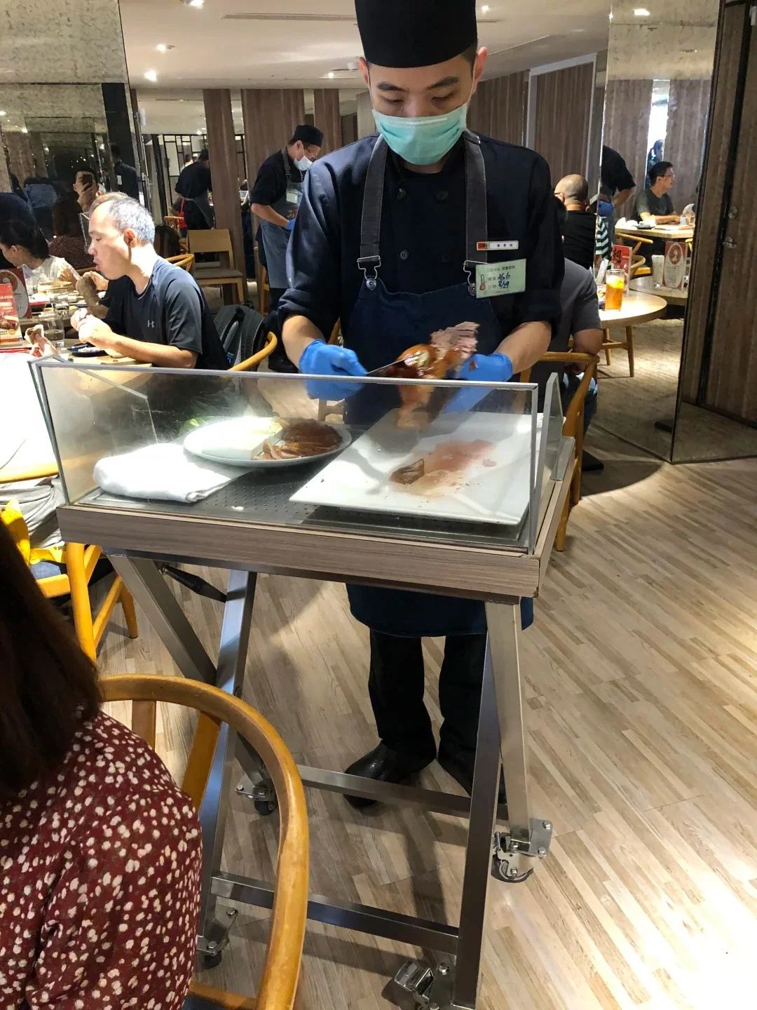 테이블 앞에서 직접 썰어주는 퍼포먼스, 베이징덕을 먹을때면 놓칠수 없는 볼거리죠. 뭔가 고깃집에서 볶음밥 볶을때 말없이 쳐다만 보게 되는 느낌..