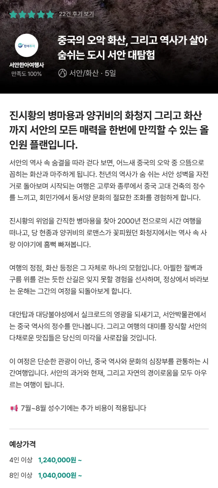 유명 여행사 서안/화산 4박 5일
