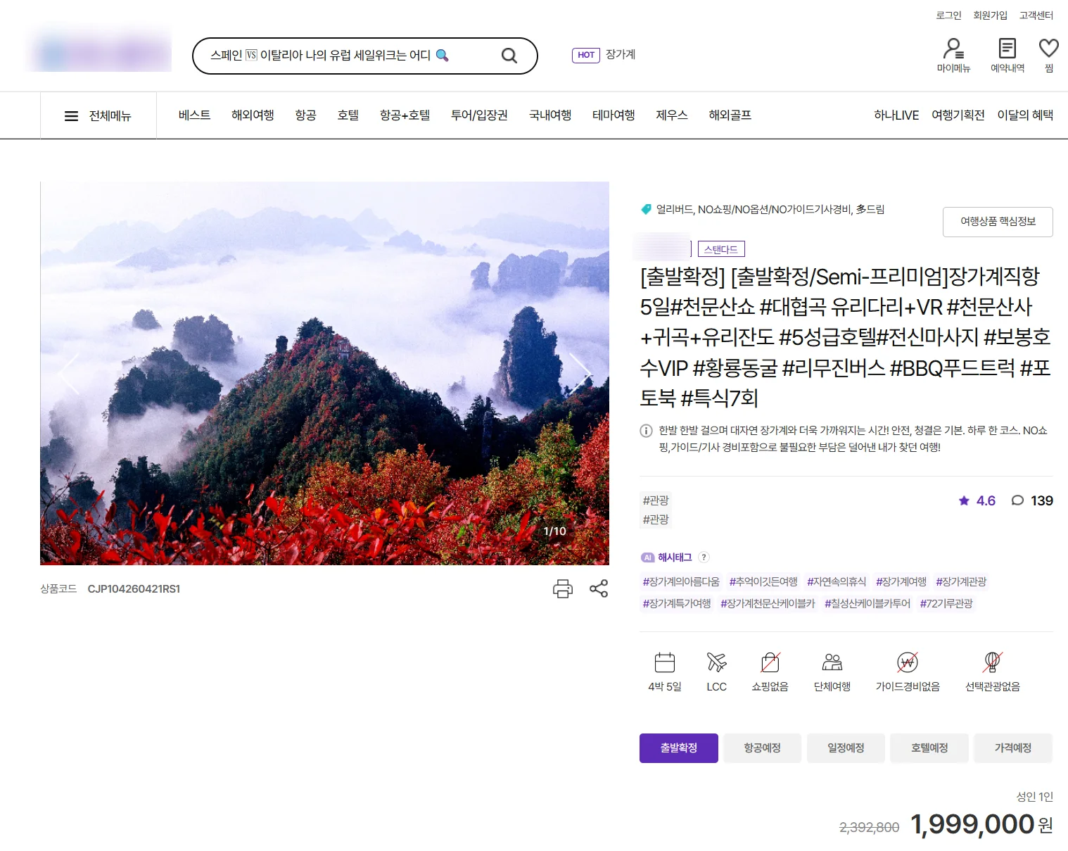 그런데 막상 장가계 여행을 준비하다 보면 고민이 생깁니다. 홈쇼핑이나 대형 여행사의 패키지 상품을 이용할지, 아니면 직접 항공권을 예약하고 현지 투어를 따로 구성할지.