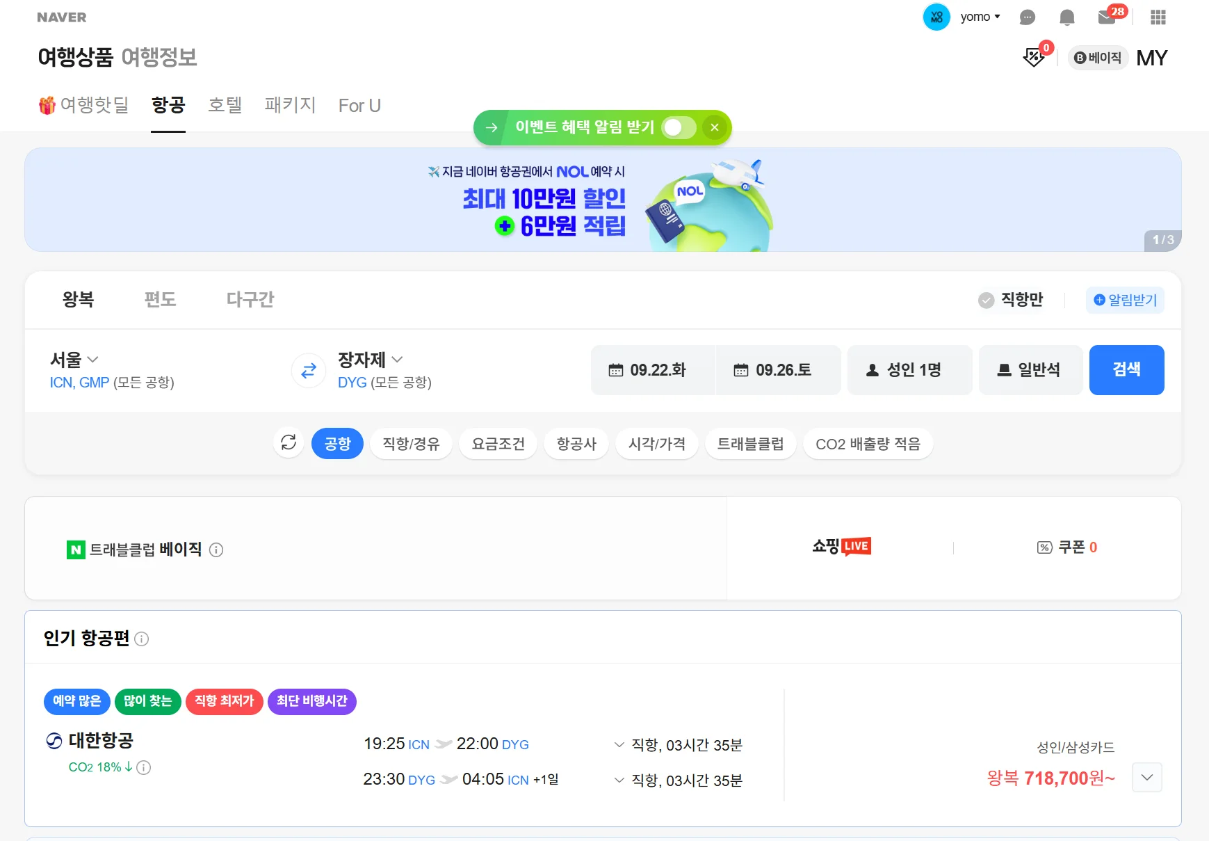 1단계. 항공권 셀프 예약 (스카이스캐너, 네이버 항공권, 대한항공 홈페이지 등)